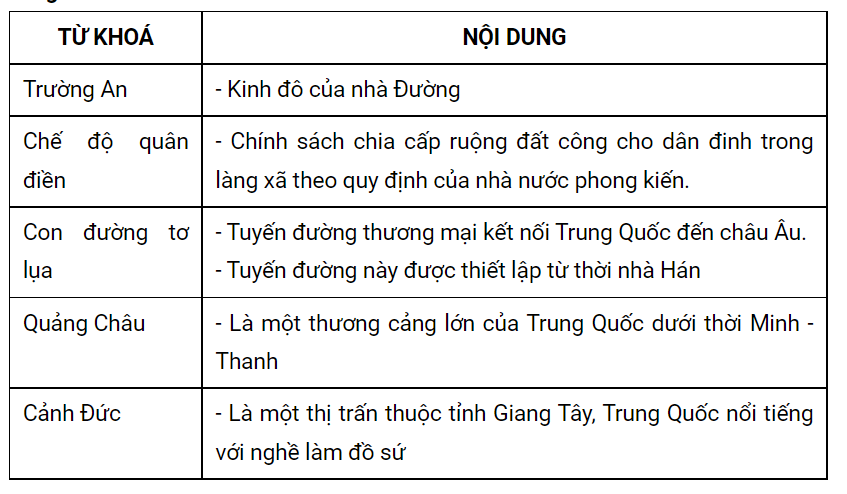 Bài tập 1: Từ thế kỉ VII đến giữa thế kỉ XIX, Trung Quốc đã trải qua các triều đại