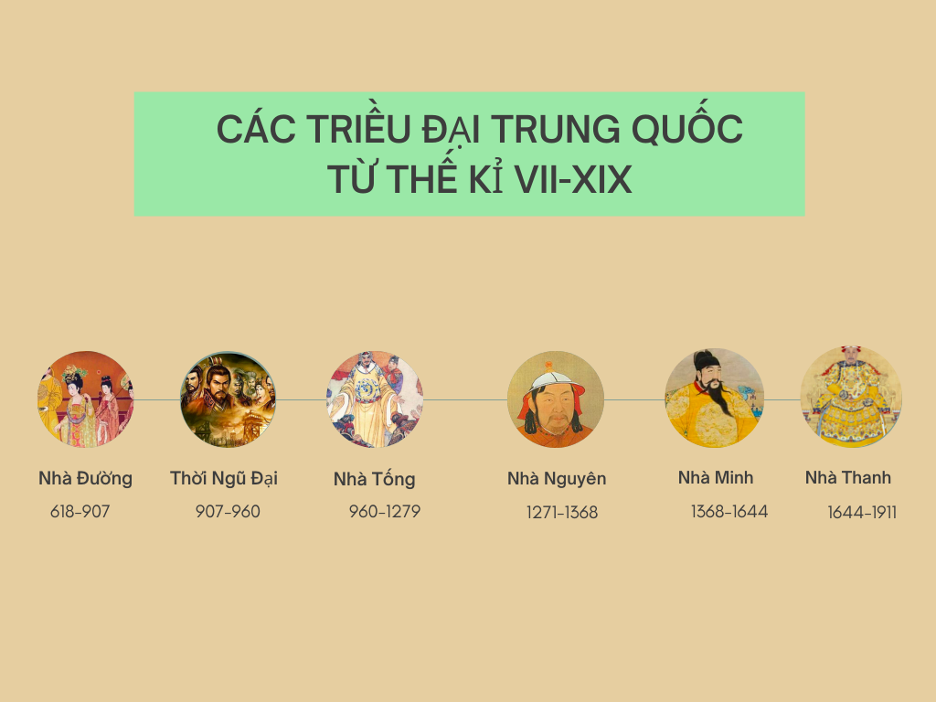Từ thế kỉ VII đến giữa thế kỉ XIX, Trung Quốc đã trải qua các triều đại lớn: