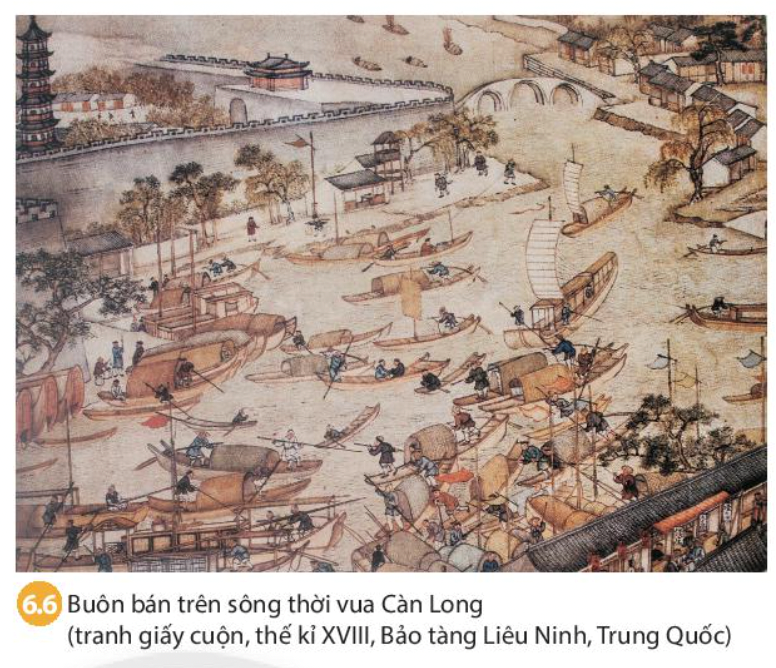 Em hãy mô tả những biểu hiện sự phát triển kinh tế dưới thời Minh-Thanh. Bức tranh 6.6 cho em biết điều gì về hoạt động thương mại ở Trung Quốc thời Thanh?