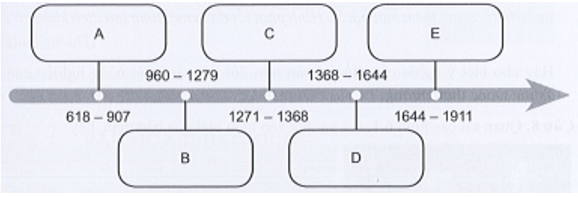 A, Nhà Đường B, Nhà Tống C, Nhà Nguyên D, Nhà Minh E, Nhà Thanh