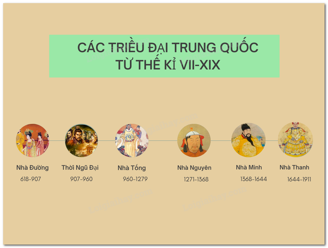 Từ thế kỉ VII đến giữa thế kỉ XIX, Trung Quốc đã trải qua các triều đại lớn:
