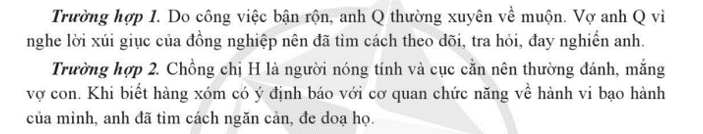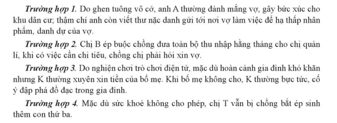 a) Căn cứ vào thông tin, em hãy chỉ ra các hành vi vi phạm pháp luật về phòng, chống bạo lực gia đình trong hai trường hợp trên.