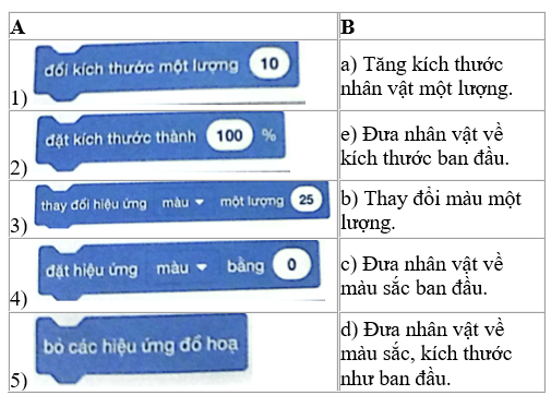 Em hãy ghép mỗi lệnh ở cột A và mô tả tương ứng ở cột B.