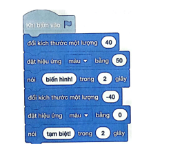 2) Nhóm lệnh... có lệnh làm nhân vật nhỏ đi.