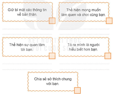 - Em đánh dấu vào ô trống ở các cách thiết lập quan hệ với những người bạn mới sau: