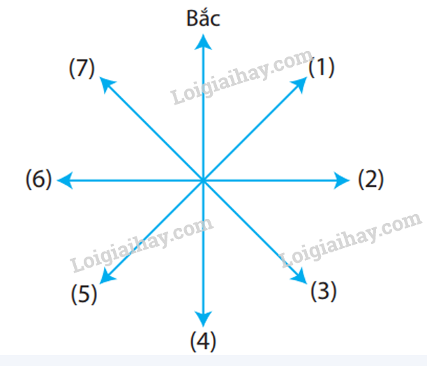 Dựa vào mũi tên chỉ hướng bắc (đề bài cho), xác định hướng còn trống.