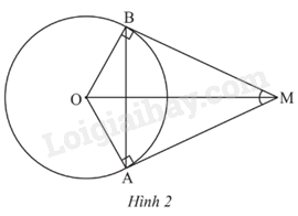 Cho hai tiếp tuyến của đường tròn (O) tại A và B cắt nhau tại M (Hình 2). Biết (widehat {AMB} = {50^o}). Số đo cung nhỏ AB là: