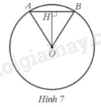 Hình 7 mô tả công trình xây dựng cây cầu bắc qua một hồ nước với mặt hồ có dạng hình tròn tâm O bán kính 2 km. Cây cầu có hai đầu cầu là hai điểm A, B nằm trên đường tròn tâm O. Tính chiều dài của cây cầu để khoảng cách từ tâm O của hồ nước đến cây cầu là OH = 1732 m (làm tròn kết quả đến hàng đơn vị của mét).