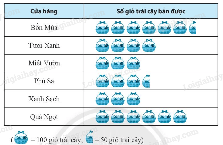 a) Cửa hàng Bốn Mùa bán được nhiều giỏ trái cây nhất.