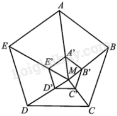 (frac{{MA'}}{{MA}} = frac{{MB'}}{{MB}} = frac{1}{3},frac{{CC'}}{{MC}} = frac{{DD'}}{{MD}} = frac{2}{3},frac{{ME'}}{{E'E}} = frac{1}{2}). Chứng minh ngũ giác A’B’C’D’E’ là ngũ giác đều.