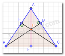 c) Trong tam giác ABC có H là giao điểm của hai đường cao BD và CE nên H là trực tâm trong tam giác ABC hay AF vuông góc với BC.