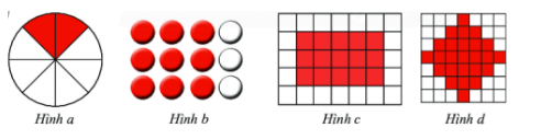 Hình c: \(\frac{{15}}{{35}} = \frac{3}{7}\)