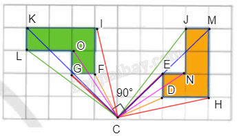 Do đó, ta có phép quay tâm C, góc quay 90° biến các điểm H, M, J, N, E, D tương ứng thành các điểm I, K, L, O, G, F.