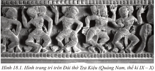 Đây là hình tượng Vũ Nữ Apsara được chạm khắc trên bệ thờ của di tích Trà Kiệu bằng đá sa thạch. Đây là thành tựu văn hóa về nghệ thuật (điêu khắc đá). Điêu khắc đá có 2 loại chính là phù điêu và tượng có chủ đề về thần voi, sư tử, vũ nữ Apasara.