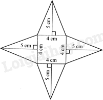Cắt tấm bìa như hình bên rồi gấp lại theo các cạnh của hình vuông, ta được hình chóp tứ giác đều thỏa mãn yêu cầu.