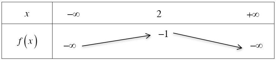 Từ đồ thị hàm số ta thấy rằng, parabol quay bề lõm xuống dưới và có đỉnh \(S\left( {2; - 1} \right)\) nên có bảng biến thiên như sau:
