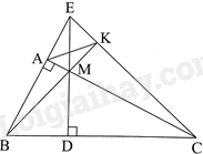 c) Đường thẳng BM cắt EC tại K. Chứng minh rằng \(\widehat {EKA} = \widehat {EBC}\).