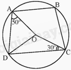 Suy ra \(\widehat {ABC} = {180^o} - \widehat {ADC} = {180^o} - \widehat {ADO} - \widehat {CDO} = {180^o} - {30^o} - {50^o} = {100^o}\)