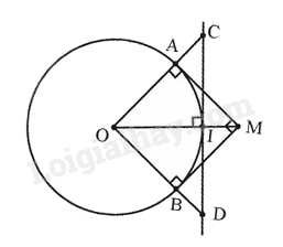 - Chứng minh tứ giác AOBM là hình vuông suy ra độ dài MA và MB.