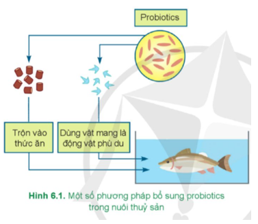 Luyện tập: Dựa vào Hình 6.1, hãy nêu một số phương pháp bổ sung probiotics trong nuôi thuỷ sản.