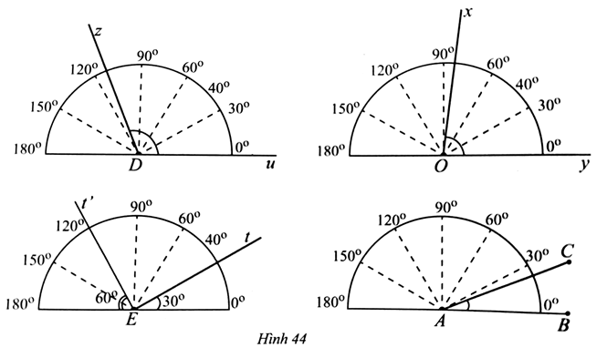Đọc tên các góc ở Hình 44 và viết các góc đó theo thứ tự tăng dần.