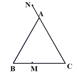 Cho tam giác ABC đều cạnh a. Các điểm M, N lần lượt thuộc các tia BC và CA thoả mãn \(BM = \frac{1}{3}BC,CN = \frac{5}{4}CA\). Tính: