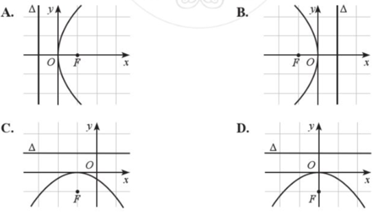 Parabol trong hệ trục tọa độ Oxy nào dưới đây có phương trình chính tắc dạng:
