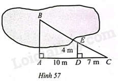Hay \(\frac{AB}{4}=\frac{10+7}{7}=>AB=\frac{4.\left( 10+7 \right)}{7}=9,7\left( m \right)\)