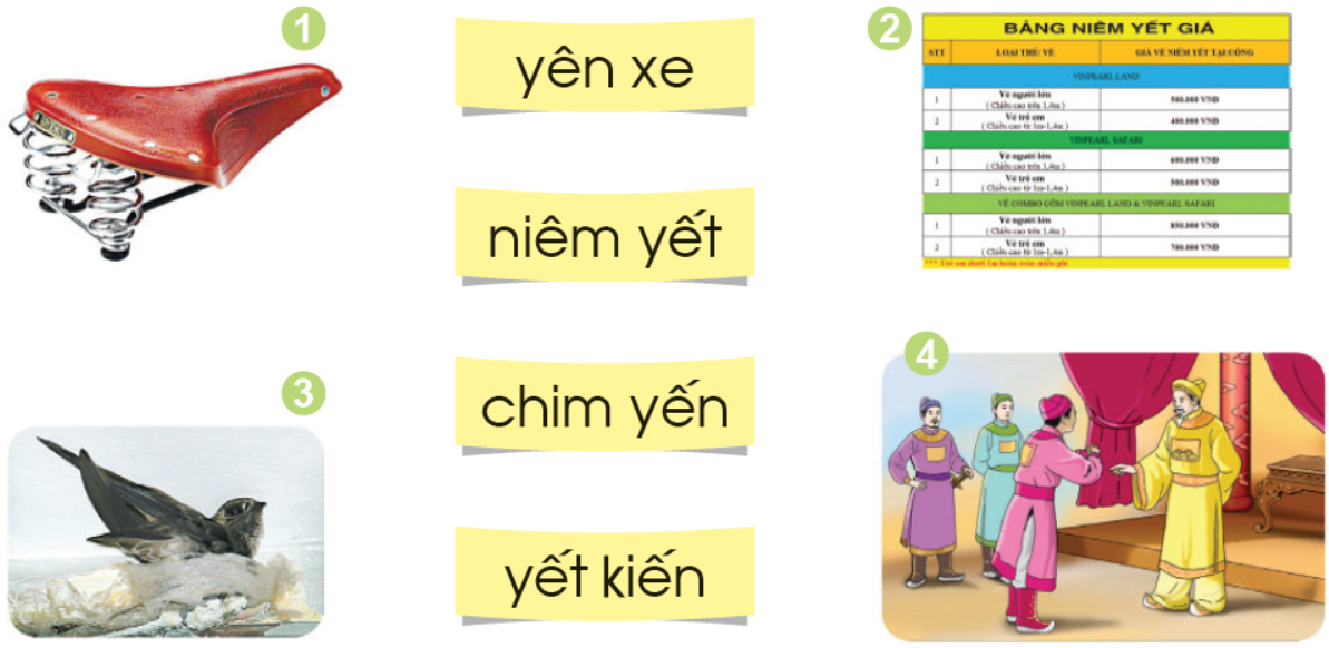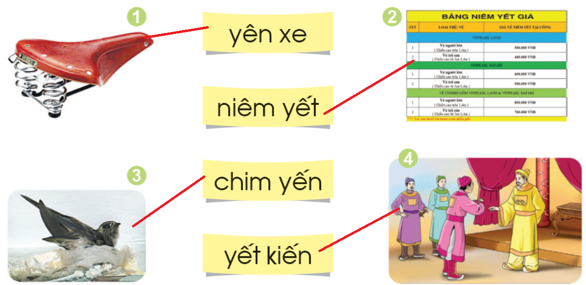 2. Tìm tiếng có vần yên, tiếng có vần yêt?