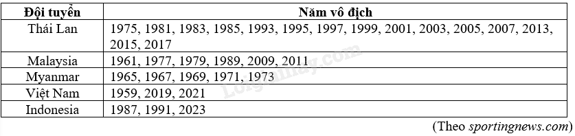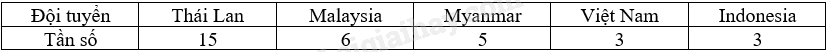 a) Lập bảng tần số biểu diễn số lần vô địch môn bóng đá nam SEA Games của các quốc gia trên.