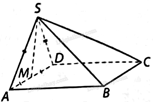 Vì BC // AD nên\(\left( {BC,SA} \right) = \left( {AD,SA} \right) = \widehat {SAD} = {60^ \circ }\) và \(\left( {BC,SM} \right) = \left( {AD,SM} \right) = {90^ \circ }\).