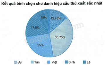 a) Tổng số lượt bình chọn là \(55 + 135 + 100 + 70 + 40 = 400\). Tần số tương đối của An, Tân, Việt, Bình, Lê lần lượt là: