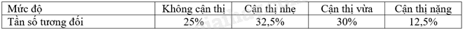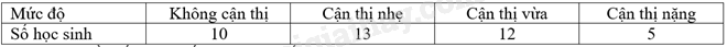 Bảng thống kê sau cho biết số lượng học sinh của lớp 9B theo mức độ cận thị.