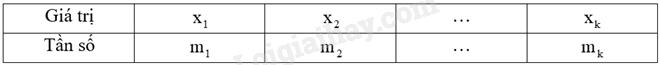 Trong bảng tần số, ta chỉ liệt kê các giá trị \({x_i}\) khác nhau, các giá trị \({x_i}\) này có thể không là số.