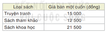 Bạn Nam được phân công mua một số sách làm quà tặng trong buổi tổng kết cuối năm học của lớp. Nam dự định mau ba loại sách với giá bán như bảng sau. Giả sử Nam cần mua x cuốn sách khoa học, x+8 cuốn sách tham khảo và x + 5 cuốn truyện tranh.