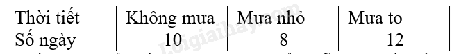 Theo dõi thời tiết tại một địa điểm du lịch trong 30 ngày người ta thu được bảng sau: