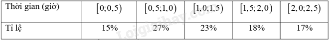 Một cuộc điều tra về thời gian dùng mạng Internet trong ngày của học sinh lớp 9 tại một thành phố cho kết quả như sau: