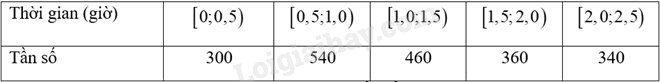 + Số học sinh dùng mạng Internet từ 2,0 giờ đến dưới 2,5 giờ trong ngày là \(2\;000.17\% = 340\) (học sinh).