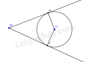 Xét tứ giác MAOB có \(\widehat {MAO} = \widehat {MBO} = {90^o}\)(do tính chất tiếp tuyến)