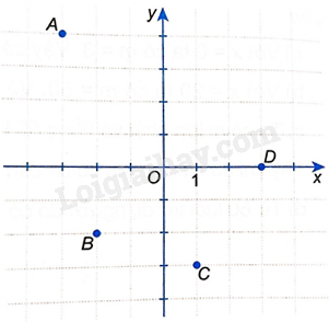 Sử dụng kiến thức nhận biết tọa độ của một điểm trong mặt phẳng tọa độ để xác định tọa độ của một điểm: Lấy một điểm M bất kì trong mặt phẳng tọa độ Oxy. Từ M kẻ các đường thẳng vuông góc với các trục tọa độ. Giả sử các đường thẳng vuông góc này cắt trục hoành tại điểm \({x_0}\) và cắt trục tung tại điểm \({y_0}.\) Khi đó, cặp số \(\left( {{x_0};{y_0}} \right)\) gọi là tọa độ của điểm M và kí hiệu \(M\left( {{x_0};{y_0}} \right)\), \({x_0}\) được gọi là hoành độ và \({y_0}\) được gọi là tung độ của điểm M.