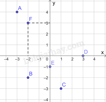 b) Xác định các điểm \(E\left( {0; - 1} \right)\) và \(F\left( { - 2;3} \right)\) trong hình bên.