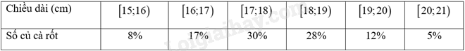 Người ta trồng cà rốt và thử nghiệm một loại phân bón mới. Khi thu hoạch người ta đo chiều dài các của cà rốt thu được kết quả sau: