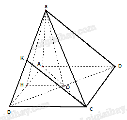Khi đó \(SO \bot \left( {ABCD} \right)\) nên \(SO \bot AB\),