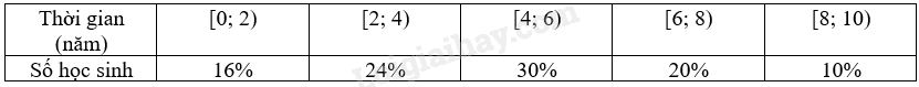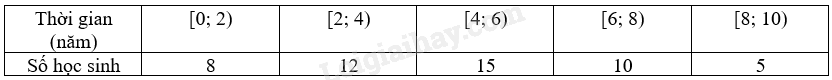 Bảng thống kê sau cho biết thời gian học tiếng Anh (đơn vị là năm, tính từ lúc bắt đầu học tiếng Anh đến thời điểm khảo sát) của một số học sinh lớp 9.