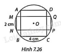Hình vuông ABCD có cạnh 4 cm và hình chữ nhật MNPQ có chiều rộng 2 cm cùng nội tiếp trong đường tròn (O) (Hình 7.26). Tính chiều dài MQ của hình chữ nhật.