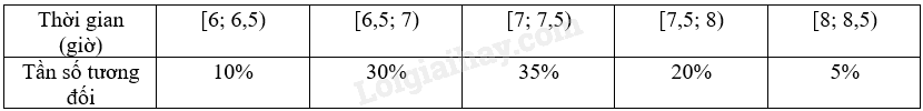 Tần số tương đối của các nhóm [6; 6,5); [6,5; 7), [7; 7,5), [7,5; 8), [8; 8,5) lần lượt là: