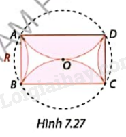 Từ một mảnh giấy có dạng hình tròn bán kính R, bạn Vy gấp lại thành một hình chữ nhật ABCD với chiều rộng AB = R như trong Hình 7.27. Tính tỉ số diện tích của hình chữ nhật gấp được với diện tích mảnh giấy ban đầu. làm tròn kết quả đến hàng phần trăm.