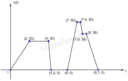 Đồ thị sau biểu diễn vận tốc xe máy (tính bằng km/h) của anh Nam dưới dạng một hàm số của thời gian t (tính bằng phút)