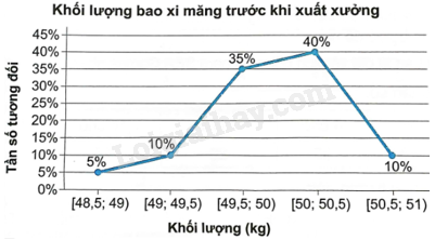 Kiểm tra khối lượng của một số bao xi măng trước khi xuất xưởng cho kết quả như sau: