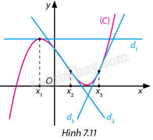 Cho hàm số \(f\left( x \right)\) có đồ thị là đường cong \(\left( C \right)\) tròn Hình 7.11. Biết \({d_1},{d_2},{d_3}\) là các tiếp tuyến của \(\left( C \right)\) tại các điểm có hoành độ là \({x_1};{x_2}\) và \({x_3}\). Khẳng định nào dưới đây đúng?